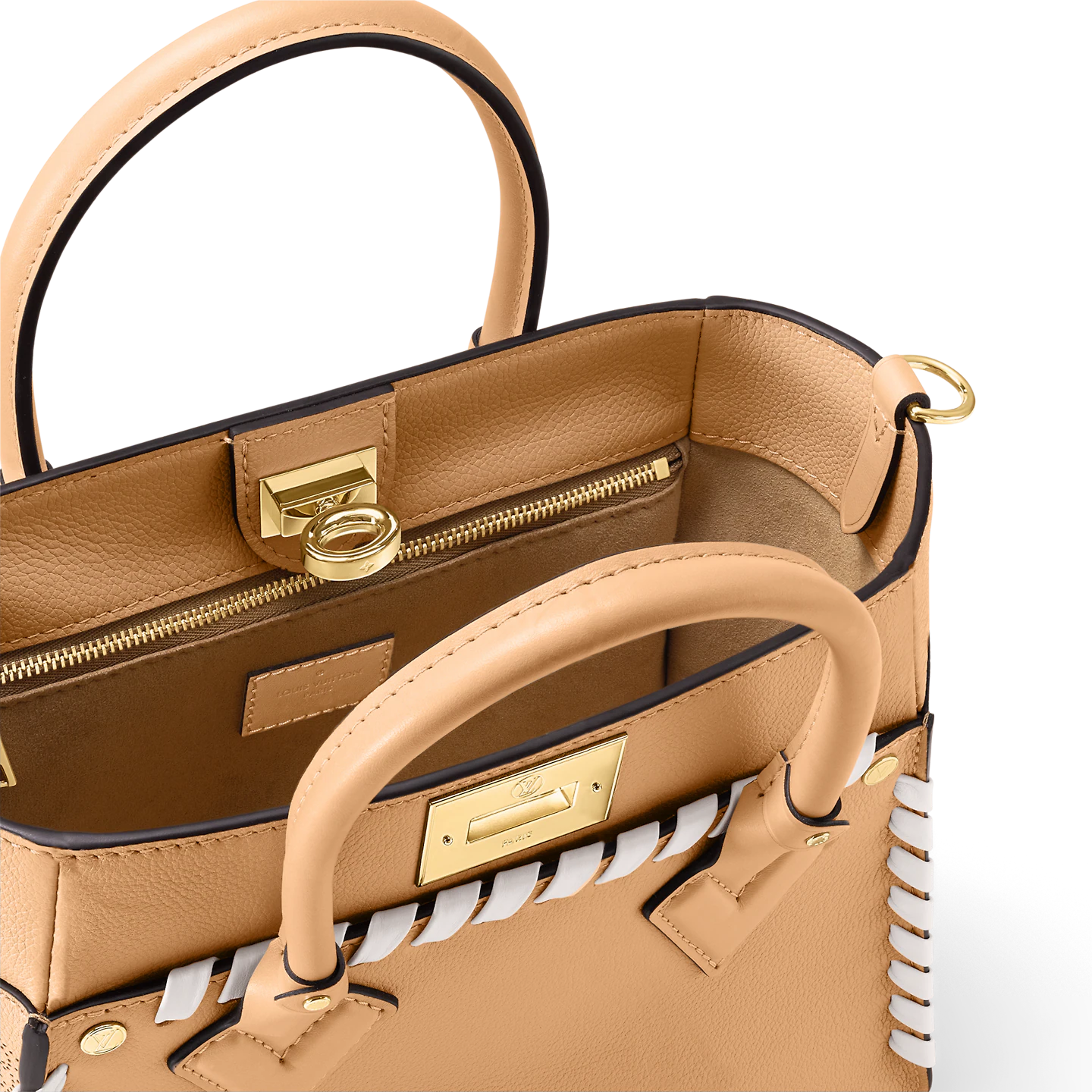 The On My Side MM tote bag is fashioned from an elegant combination of small-grained calf leather and emblematic Monogram
