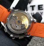 The Patek Philippe Aquanaut Chronograph Orange 5968A-001 Replica is a high quality watch. It features a 904L stainless steel case with a steel bezel and sapphire crystal. The movement is an automatic caliber CH 28-520 C with a power reserve of 60 hours and a precision of -3/+3 seconds per day within COSC certification limits. The second hand has a sweep motion. The bracelet is made of rubber with adjustable links and a 904L stainless steel fold clasp.