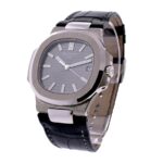 The Patek Philippe Nautilus 5711G-001 Replica is a high quality watch that is sure to turn heads. It features a 904L stainless steel case and bezel. with a sapphire glass crystal and a 40.00 mm size and 8.3 mm thickness. The movement is an automatic caliber 324 S C with a 60-hour power reserve and precision within COSC certification limits. The dial is grey with stick indices and Patek Philippe hour-markers. and the hands are 904 stainless steel stick. The bracelet is black leather with adjustable links and a 904L stainless steel tang clasp.
