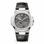 The Patek Philippe Nautilus Moon Phase Replica is a high quality watch. It features a 904L stainless steel case with a steel bezel and sapphire crystal. The movement is an automatic caliber 240 PS IRM C LU with a power reserve of 60 hours and a precision of -3/+3 seconds per day within COSC certification limits. The second hand has a sweep motion. The bracelet is made of leather with an adjustable link and a stainless steel fold-over clasp.The dial is grey with stick and dot indices and 904L stainless steel stick hands. The functions include hours. minutes. small seconds. date. moonphase. and power reserve indicator. The watch has passed the 30m water resistance test and is protected by a full 2 year international United Luxury warranty. It is a perfect 1:1 super clone Swiss mechanism watch that even your jeweler won’t be able to tell the difference.
