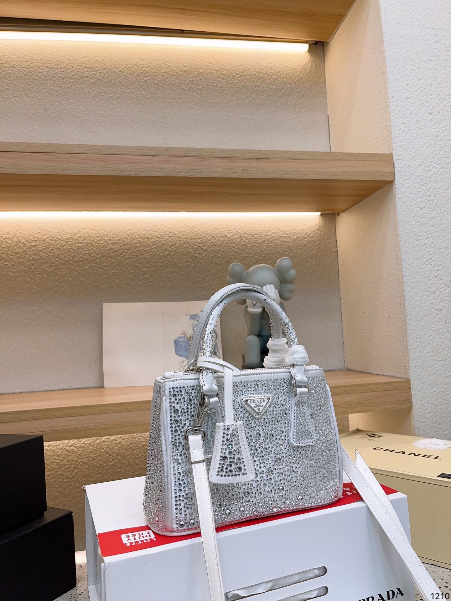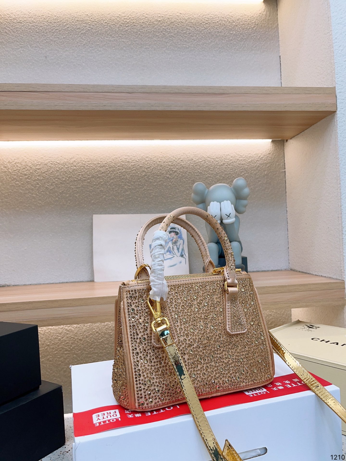 Prada this season a lot of BlingBling, not only bags and hats, clothes are burst! It’s so beautiful! This kind of see the drill can not extricate themselves! Immediately saw this crystal kill bag convex store only gold, silver, feel good like size 23*16cm
