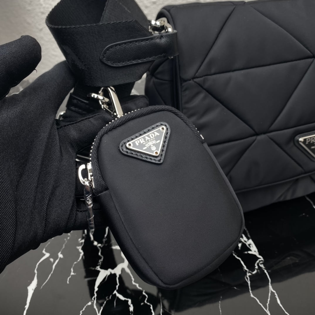The new large 3-in-1 🎉1BD290👏👏 Prada’s iconic triangular logo is restyled into a stitching pattern for this soft-lined Re-Nylon recycled nylon shoulder bag. The sustainable Re-Nylon recycled nylon material shows the evolution of Prada fabric selection. The mini pouch is attached to the shoulder strap for a modern touch, and the front is decorated with a classic enameled triangle logo for brand touch. 👏👏 Dimensions: Length 24cmx height 17.5cmx bottom 8.5cm