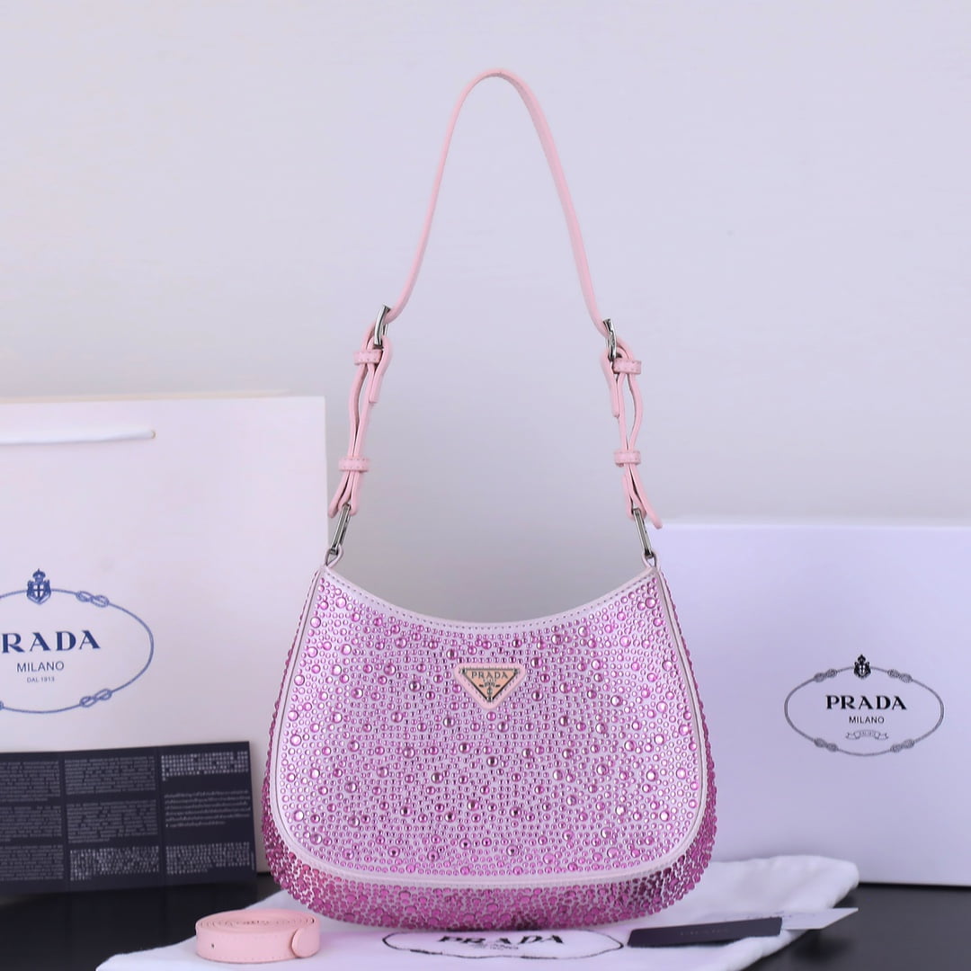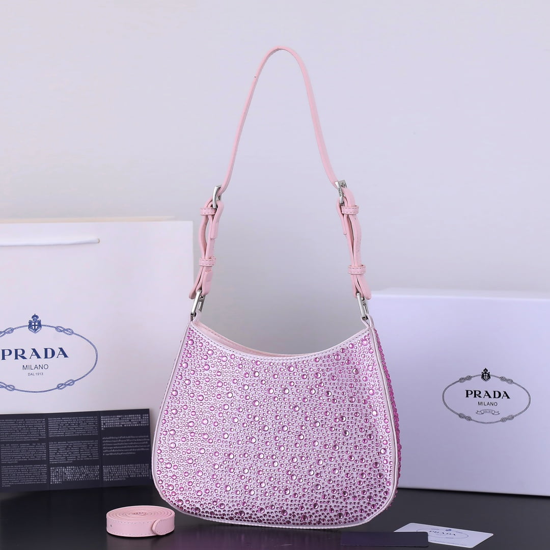 Model 8801, size 22 ’18’ 5. Prada Ss21 new sparkling rhinester full of diamond Hobo bag Wow click! The whole bag is studded with flash diamonds Prada Hobo bag under the light BlingBling flash diamonds, flash to the eye! Too beautiful ah believe me, carrying it to shop at night is very suction-suction-ball, head rate is particularly high where to get all kinds of praise this flash diamond bag is also particularly good to wear, can be fairy can be cool, what occasions are suitable, especially to participate in Prada with the dress, simply beautiful wow