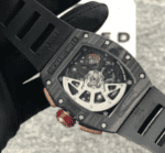 The Richard Mille RM055 Bubba Watson Replica is a luxurious watch with a sleek black design. It features an automatic