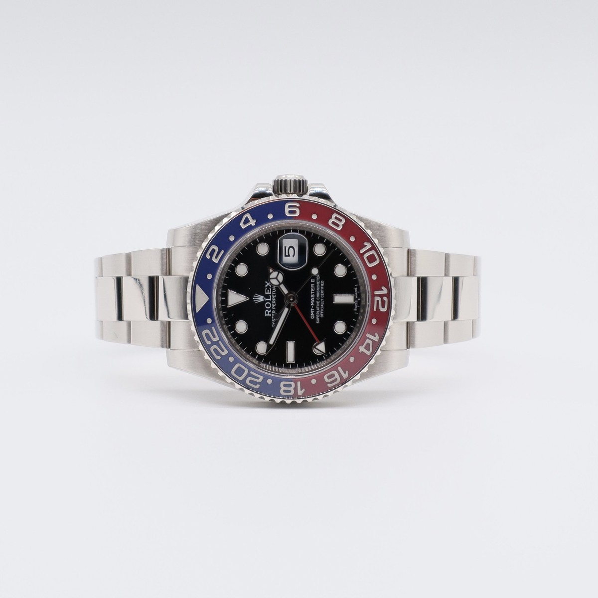 The Rolex GMT-Master II Blue Dial & Red/Blue Ceramic Bezel Oyster Bracelet 116719BLRO Replica is a stunning watch. It features a 904L stainless steel case with a white gold color. a red and blue ceramic bezel. and a sapphire crystal. The movement is an automatic caliber 3185 with a power reserve of 60 hours and a precision of -3/+3 sec/day within COSC certification limits. The second hand has a sweep motion.