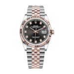 This Rolex Datejust 36 126231-0019 replica is a perfect 1:1 clone of the original. It features a 904L stainless steel case and bracelet. with a rose gold and steel color combination. The 36.00mm case houses a 3235 automatic movement with a 60-hour power reserve and a precision of -3/+3 sec/day within COSC certification limits. The black dial features gem-set indices and 904L stainless steel stick hands. The watch is water-resistant up to 30m and comes with a full 2-year international warranty.