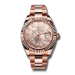 This Rolex Sky-Dweller 326935-0004 replica is a high quality piece of craftsmanship. It features a 904L stainless steel case in rose gold. with a sapphire crystal and a 904L stainless steel bezel in the same color. The 42.00mm case is 14.10mm thick. The bracelet is also made of 904L stainless steel. with an adjustable oyster type and a fold clasp in rose gold.
