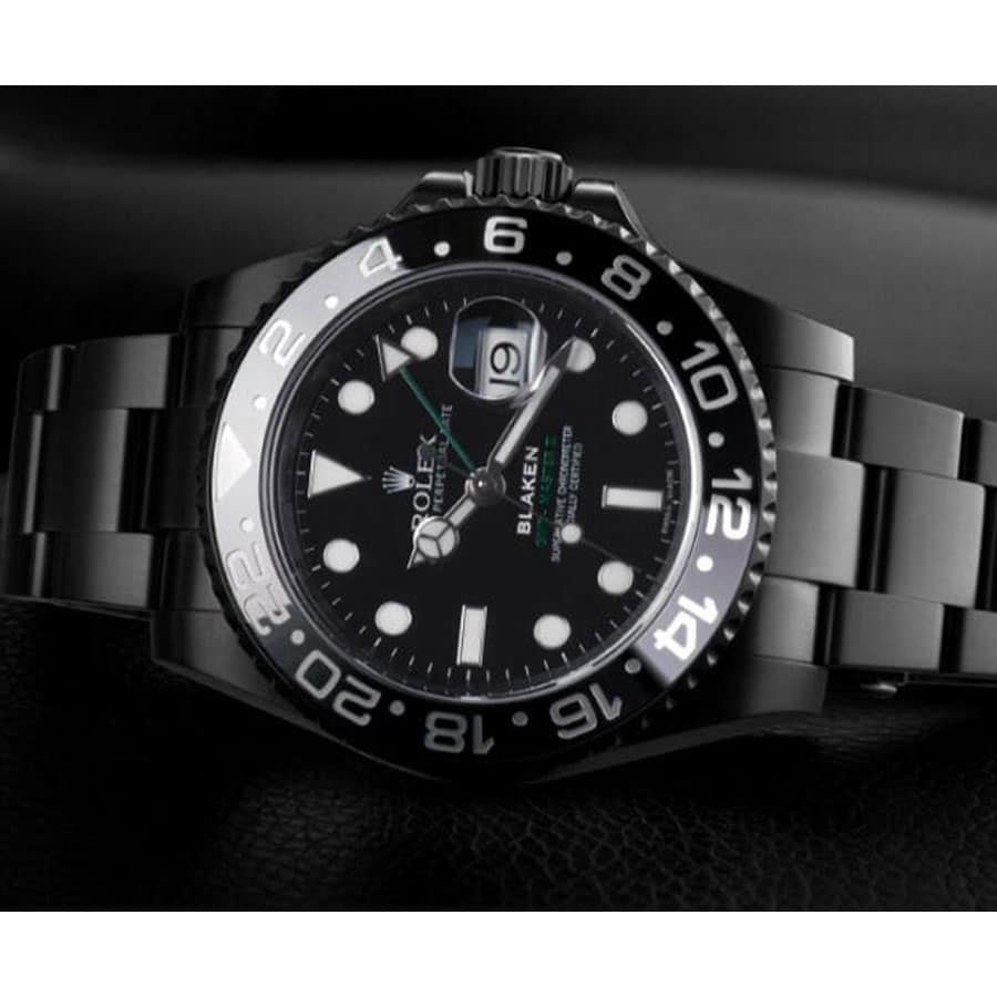 The Rolex Blaken GMT-Master II 116710 DLC-PVD Replica is a high quality watch. It features a 904L stainless steel case and black bezel. with a sapphire crystal for added protection. The movement is an automatic caliber 3186 with a power reserve of 60 hours and precision of -3/+3 sec/day within COSC certification limits. The bracelet is also 904L stainless steel with an adjustable oyster clasp.