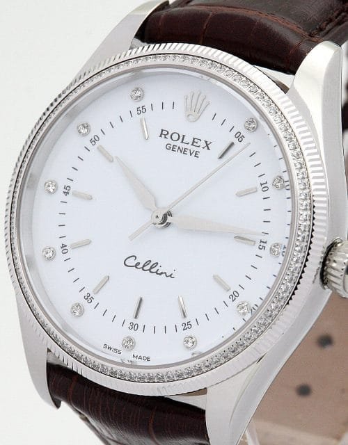 In the world of luxury timepieces. there are few names as revered as Rolex. and the Rolex Cellini Danaos 4233 White Dial Replica stands as a testament to this legacy. Crafted with meticulous attention to detail. this stunning replica embodies the elegance and sophistication that Rolex is known for. Envision slipping this masterpiece onto your wrist. feeling the supple touch of its crocodile skin bracelet and the reassuring weight of its 904L stainless steel case. Every glance at the watch face reveals a pristine white dial. punctuated by stick and dot indices that capture light beautifully. guiding your eyes with ease.