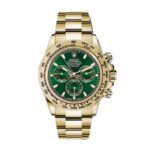 This Rolex Cosmograph Daytona Oyster Yellow Gold Green Dial 116508-0013 Replica is a high quality watch. It features a 904L stainless steel case with a yellow gold color and a sapphire crystal. The movement is an automatic caliber 4130 with a power reserve of 60 hours and a precision of (-3/+3 sec/day) within COSC certification limits. The bracelet is also made of 904L stainless steel with an adjustable link and a fold clasp in yellow gold.