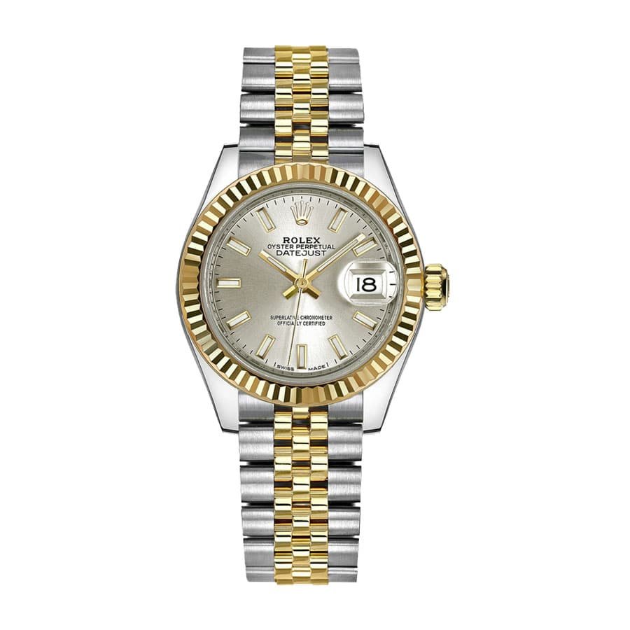 This Rolex Lady-Datejust 279173-0019 replica is a dazzling watch. It features a 904L stainless steel case with a yellow gold bezel. a sapphire crystal. and a Jubilee bracelet with adjustable links. The silver dial has stick and dot indices. and the 904L stainless steel hands are in a stick style. The automatic movement is a caliber 2236 with a 60-hour power reserve and a precision of -3/+3 seconds per day within COSC certification limits. The watch has passed a 30m water resistance test. and it is protected by a full 2-year international warranty.