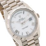 The Rolex Day-Date Stripe Dial Replica is a stunning watch. It features a 904L stainless steel case and bezel. both in white gold. and a sapphire crystal. The 40mm case is 12mm thick and is powered by an automatic 3255 caliber movement with a 60-hour power reserve and a precision of -3/+3 seconds per day within COSC certification limits. The white dial features Roman numerals and 904L stainless steel stick hands. The watch is water-resistant up to 30m and comes with a 2-year international warranty.