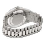 This Rolex Day-Date 40 replica is a stunning piece of craftsmanship. It features a 904L stainless steel case with a white gold color and a gem-set bezel. The 40.00mm case is 12.00mm thick and is fitted with a sapphire crystal. The bracelet is also made of 904L stainless steel and is adjustable for all sizes. The black dial features stick indices and stick hands. both made of 904L stainless steel.