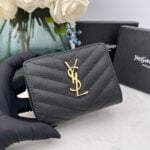 SLP brief paragraph cone zipper wallet 🎀 used the black particle texture cowhide leather, with the golden tones metal coupling YSL logo ✅ side open six ⃣ ️ screens, 1 ⃣ ️ coin bag 👏 👏 model no. : 1890 size: 12 * 10 * 3 cm 🍀 168220