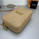 Calfskin forged lining with LAURENT-ENGRAVED metal plaques adorn the zipper. Brush bronze tone metal hardware. Slot pocket shoulder strap vertical: 62 cm