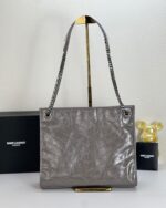 YSL NIKI Wrinkled retro oil wax skin Shoulder and backbody tote bag grey