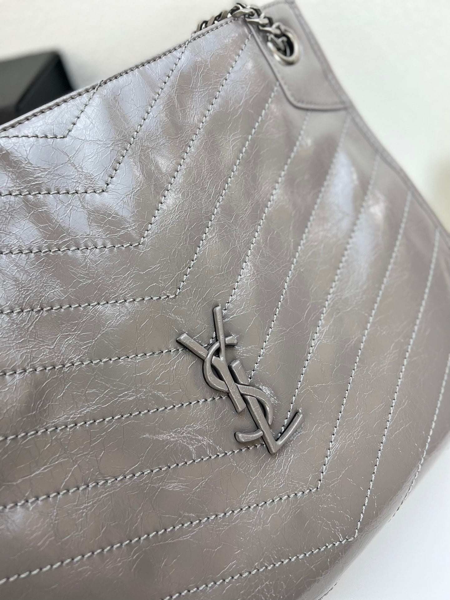 YSL NIKI Wrinkled retro oil wax skin Shoulder and backbody tote bag grey 577999 size: 33*27*11.5 cm