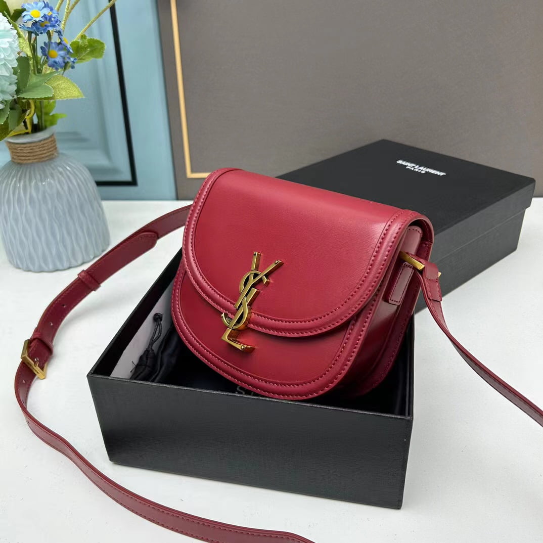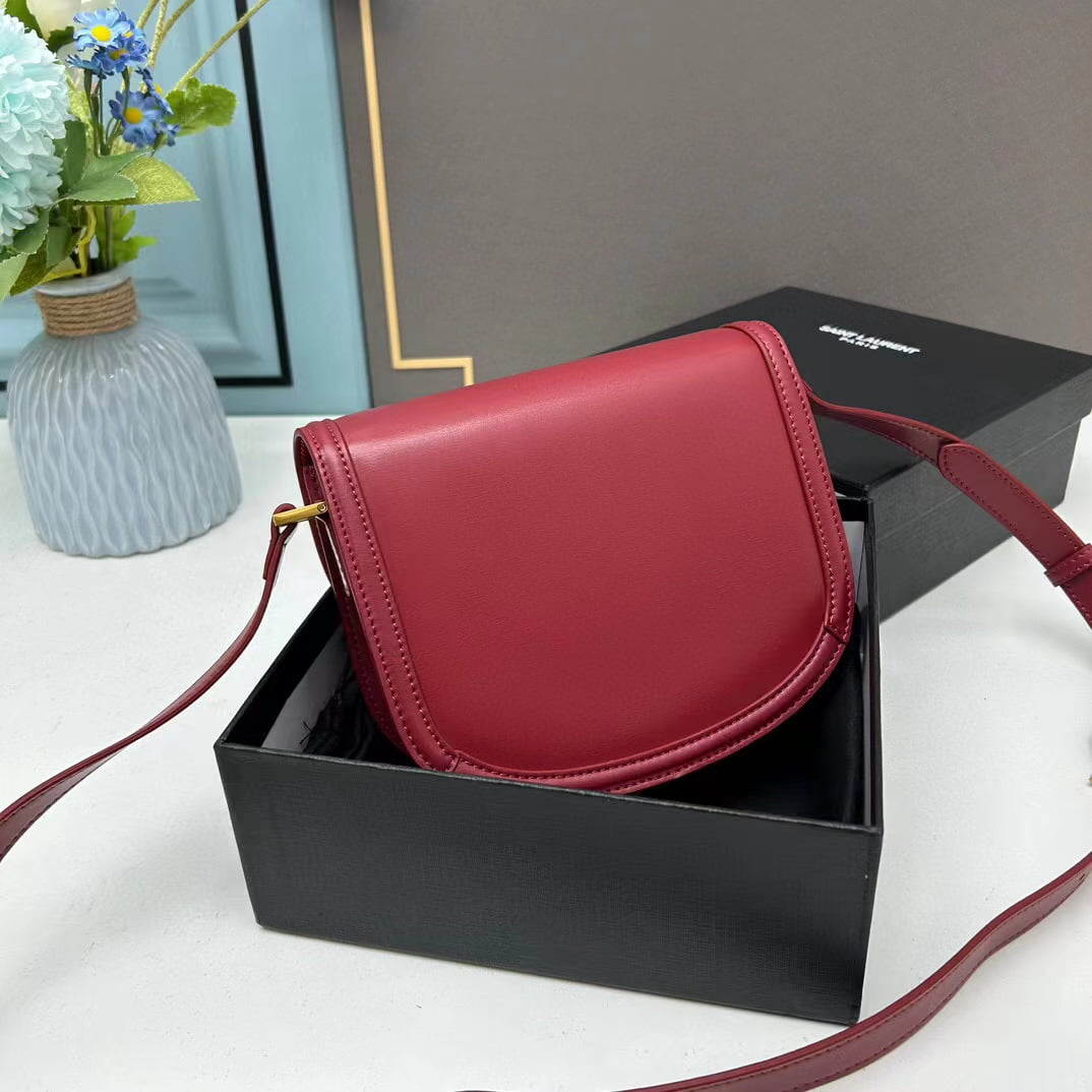 YSL saddle cowhide leather shoulder bag 0233 wine red size: 19*16*6cm