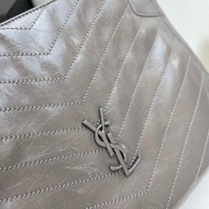 YSL NIKI Wrinkled retro oil wax skin Shoulder and backbody tote bag grey
