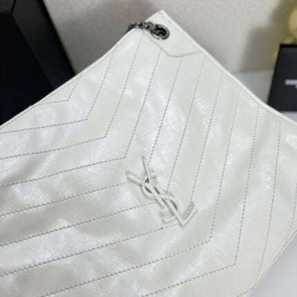 YSL NIKI Wrinkled retro oil wax skin tote bag white